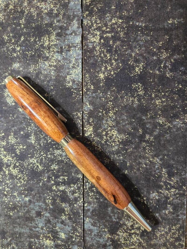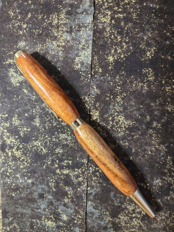 slimline birds eye maple with gold hardware clip has a black strip it is a twist pen